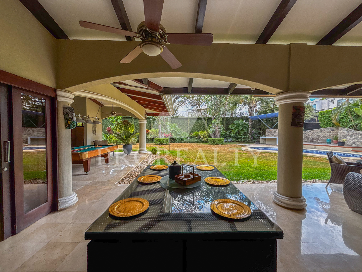 Patio trasero para ocio y actividades al aire libre.